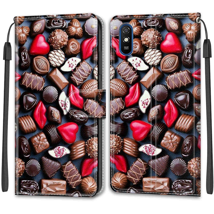 Para Xiaomi Redmi 9A Dibujo de Color de Voltaje Cierre Magnético Horizontal Flip Pu Funda de Cuero con Soporte y Ranuras de Tarjetas (C06 Red Lip Chocolate)