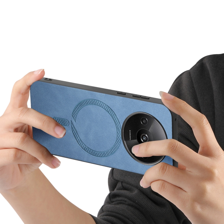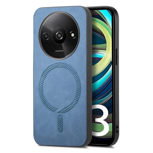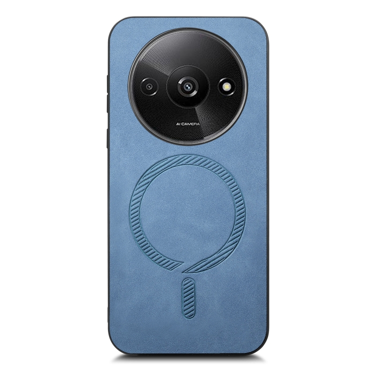 Para Xiaomi Redmi A3 Color Sólido Retro Magsafe Pu Funda para Teléfono con Contraportada (Azul)