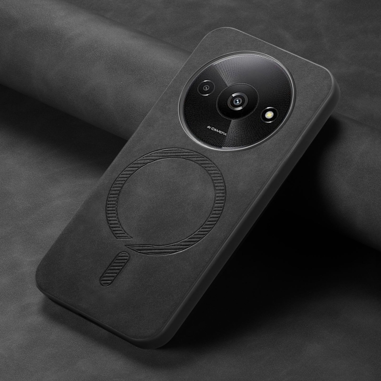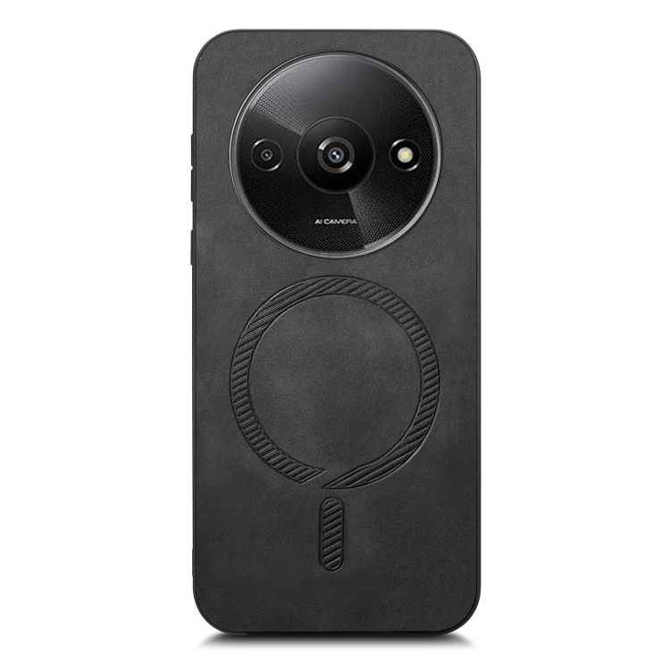 Para Xiaomi Redmi A3 Color Sólido Retro Magsafe Pu Funda para Teléfono con Contraportada (Negro)