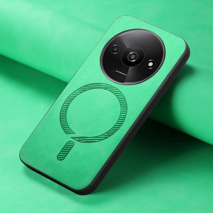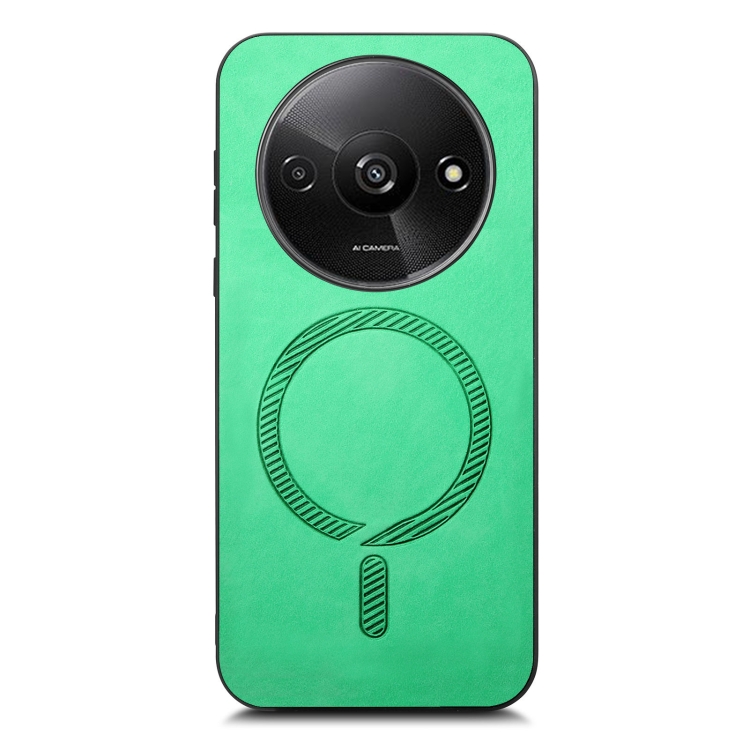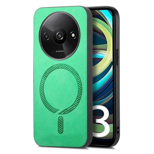 Para Xiaomi Redmi A3 Color Sólido Retro Magsafe Pu Funda para Teléfono con Contraportada (Verde)