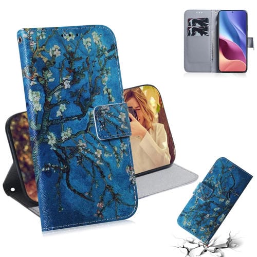 Para Xiaomi Redmi K40 / K40 Pro / Poco F3 Dibujo de Color Funda de Cuero Horizontal, con Soporte y Ranuras para Tarjeta y Billetera (Flor de Albaricoque)