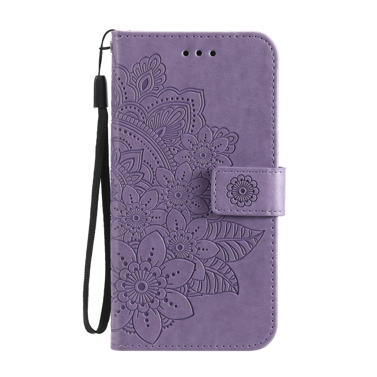 Para Xiaomi Redmi K40 / K40 Pro / Poco F3 / Mi 11I 7-Petal Flowers Patrón de Relieve Funda de Cuero de la Pu de la Pu con El Soporte y Las Ranuras y la Cartera y El Marco de la Foto (Púrpura Claro)