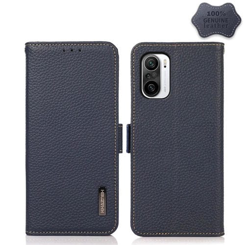Para Xiaomi Redmi K40 Pro / Poco F3 Khazneh Litchi Magnético de Cuero Genuino de Litchi (Azul)