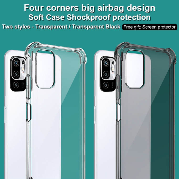 Para Xiaomi Redmi Note 10 5G Imak Estuche de TPU Airbag a Prueba de Golpes Todo Incluido con Protector de Pantalla (Negro Transparente)