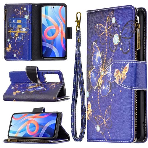 Para Xiaomi Redmi Note 11 Caja de Cuero con Cremallera de Patrón de Dibujo de Color (Mariposa Púrpura)