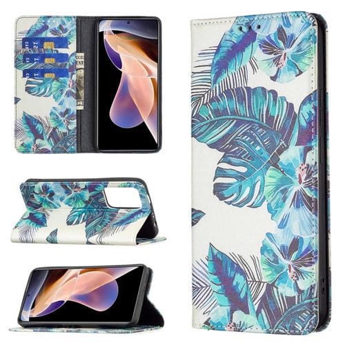 Para Xiaomi Redmi Note 11 Pro / 11 Pro + Patrón de Dibujo de Color Invisible Magnético Pu Caja del Teléfono de Cuero (Hoja Azul)