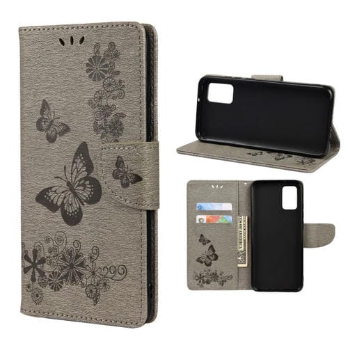 Para Xiaomi Redmi Note 11 Pro Butterfly Funda de Cuero Horizontal En Relieve En Relieve con Ranura para Tarjeta y Soporte (Gris)