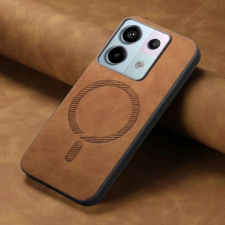 Para Xiaomi Redmi Note 12 Turbo Color Sólido Retro Magsafe Pu Funda para Teléfono con Contraportada (Marrón)