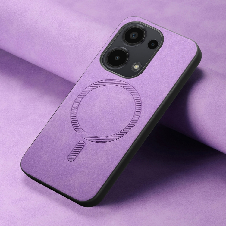 Para Xiaomi Redmi Note 13 4G Color Sólido Retro Magsafe Pu Funda para Teléfono con Contraportada (Púrpura)