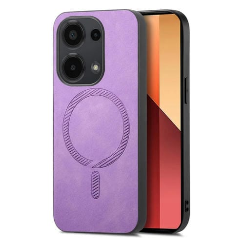 Para Xiaomi Redmi Note 13 5G Color Sólido Retro Magsafe Pu Funda para Teléfono con Contraportada (Púrpura)