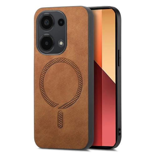 Para Xiaomi Redmi Note 13 Pro 4G Color Sólido Retro Magsafe Pu Funda para Teléfono con Contraportada (Marrón)