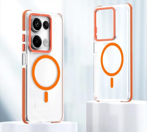 Para Xiaomi Redmi Note 13 Pro 4G Estuche para Teléfono Magsafe Híbrido de Acrílico Transparente de Doble Color (Naranja)