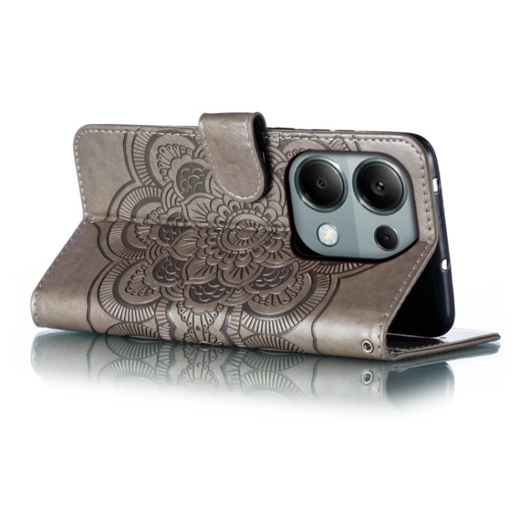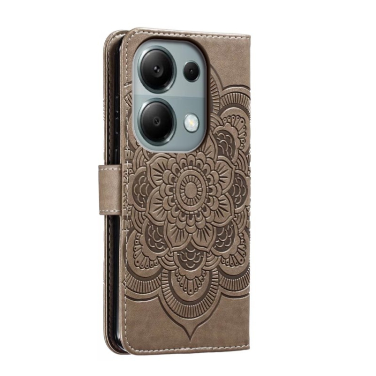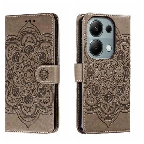 Para Xiaomi Redmi Note 13 Pro 4G Sun Mandala Funda de Cuero para Teléfono con Patrón En Relieve (Gris)