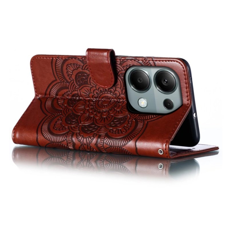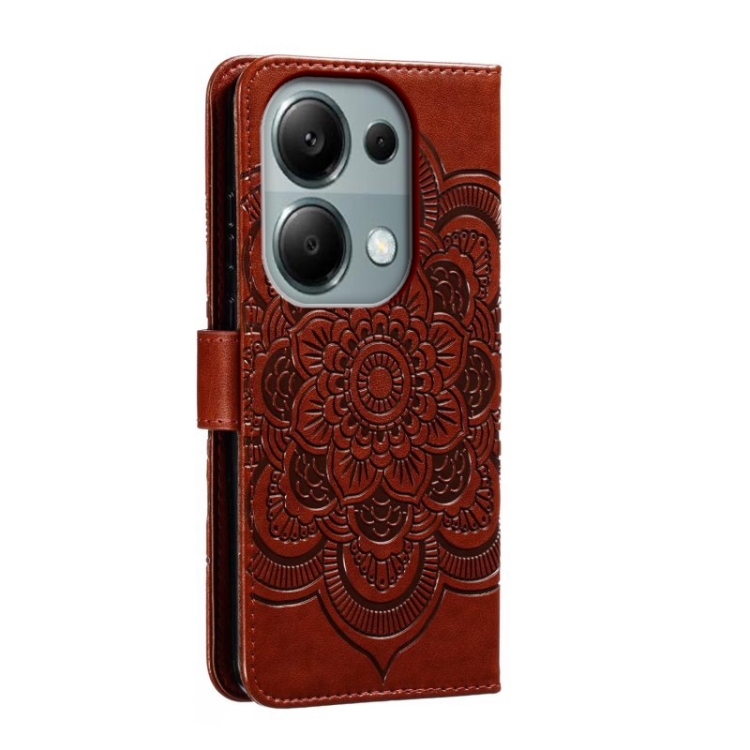 Para Xiaomi Redmi Note 13 Pro 4G Sun Mandala Funda de Cuero para Teléfono con Patrón En Relieve (Marrón)