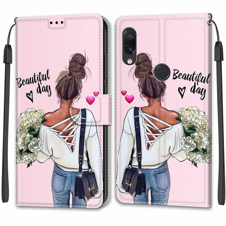 Para Xiaomi Redmi Note 7 Voltaje Dibujo de Color Magnético Cierre Magnético Flip Pu Funda de Cuero con Soporte y Ranuras para Tarjetas (Flor del Abrazo C09)