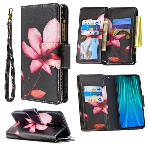 Para Xiaomi Redmi Note 8 Pro Patrón de Dibujo de Colores Cremallera Funda de Cuero con Tapa Horizontal con Soporte y Ranuras para Tarjetas y Billetera (Lotus)