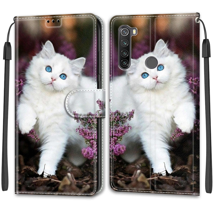 Para Xiaomi Redmi Note 8T Dibujo de Color Voltaje Dibujo Magnético Cierre de Cuero Horizontal Flip Pu Funda con Soporte y Ranuras para Tarjetas (C08 Flor Bush Big White Cat)