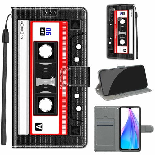 Para Xiaomi Redmi Note 8T Dibujo de Color Voltaje Dibujo Magnético Cierre de Cuero Horizontal Flip Pu Funda con Soporte y Ranuras para Tarjetas (C10 Negro Cinta Roja)