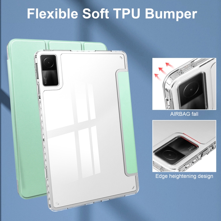 2. Soporte de tres pliegues: Función de soporte, cubierta abatible que se puede plegar para convertirse en un soporte para que ver videos sea más conveniente.