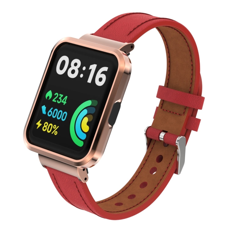 Estuche de Metal para Xiaomi Redmi Watch 2 con Banda de Cuero Genuino Integrada (Rojo)