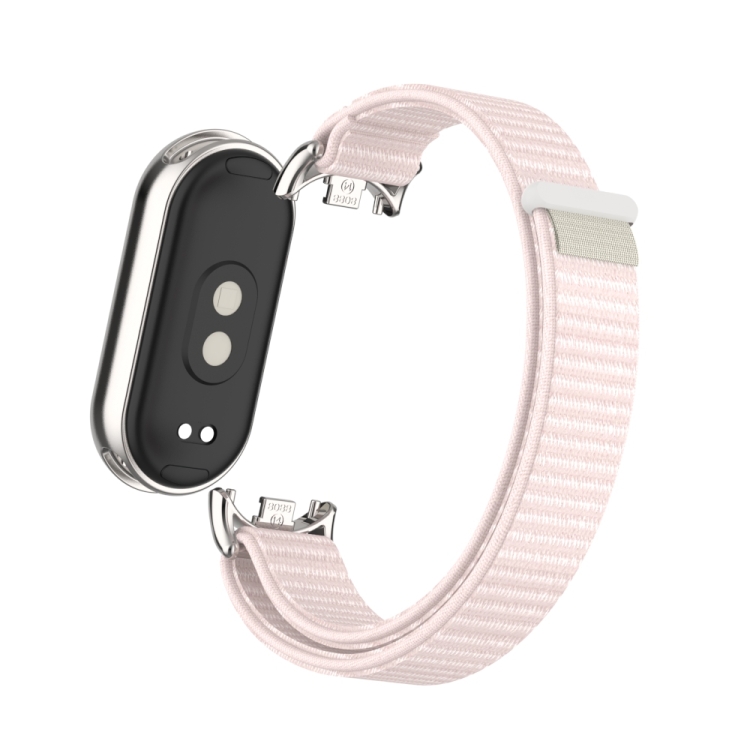 Conector de Metal + Correa con Cierre de Velcro de Nailon para Xiaomi Smart Band 9/8 (Polvo de Perla)
