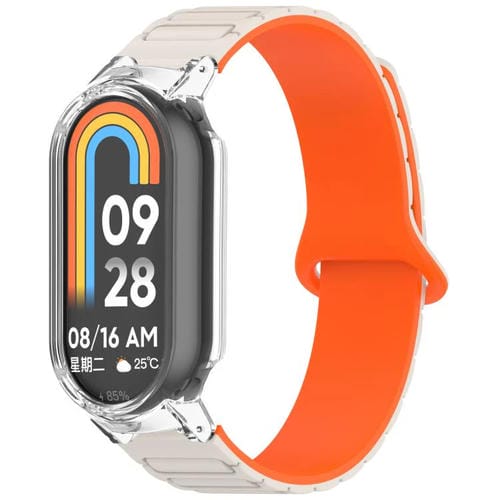 Para Xiaomi Smart Band 9/9 NFC Watch Case Correa de reloj de silicona magnética en forma de I integrada (naranja estrellado + transparente)