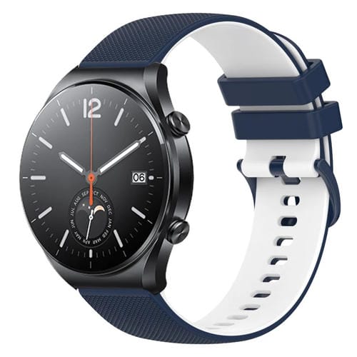 Correa de Silicona para Xiaomi Watch S1 22mm Dos Colores a Cuadros (Azul Oscuro + Blanco)