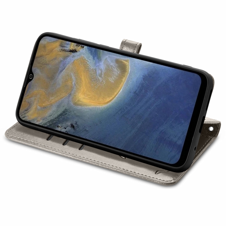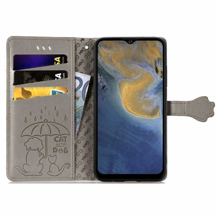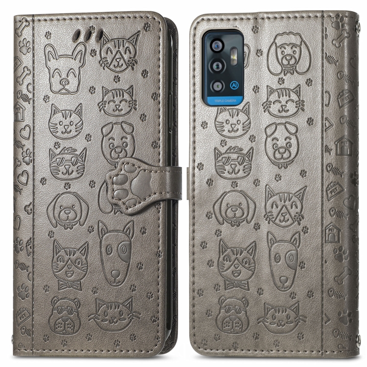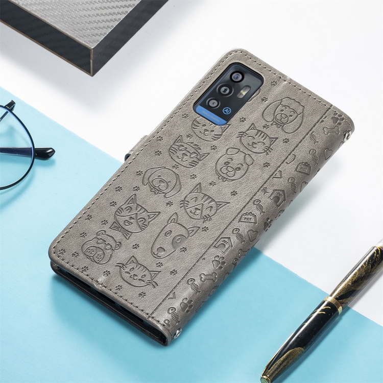 Funda para ZTE A71 con Soporte, Ranuras para Tarjetas y Billetera, Estampado Gato y Perro (Gris)