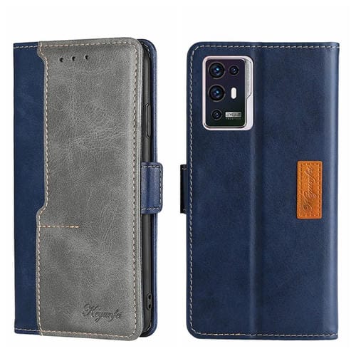 Caja de Teléfono de Cuero para ZTE Axon 30 Pro con Hebilla Lateral (Azul + Gris)