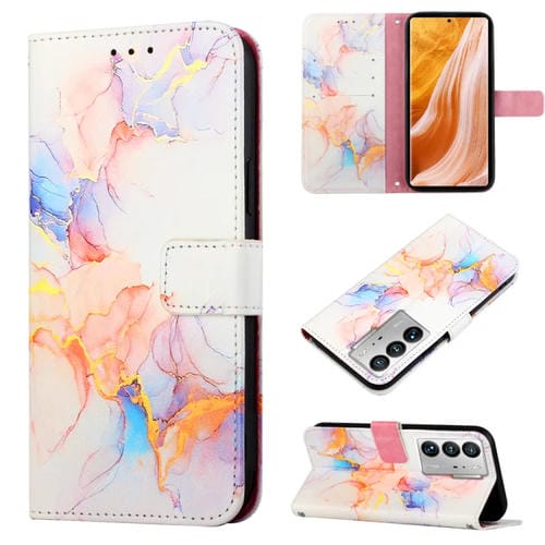 Estuche de Cuero para ZTE Axon 40 Ultra Pt003 con Tapa Patrón Mármol (Blanco)
