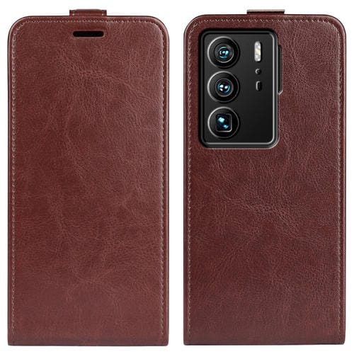 Funda de Cuero Vertical para ZTE Axon 40 Ultra R64 con Textura (Marrón)