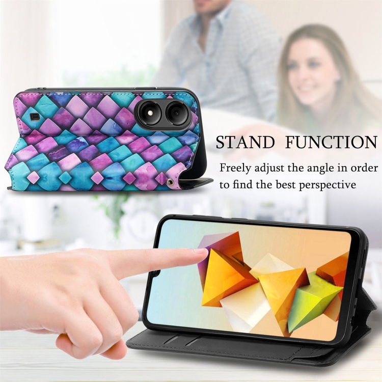 Funda de Cuero Magnética Caseneo para ZTE Blade A33S (Cubo Colorido)