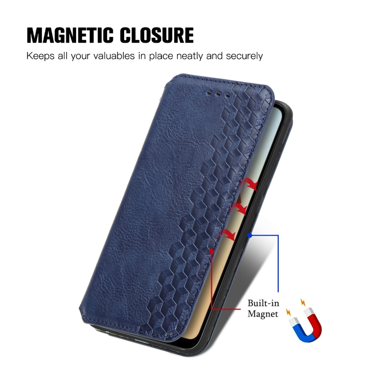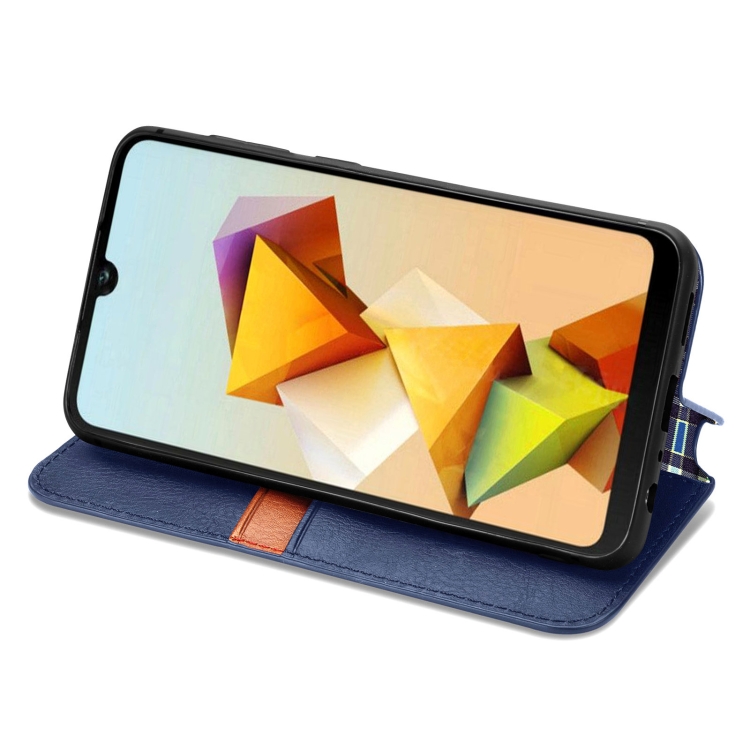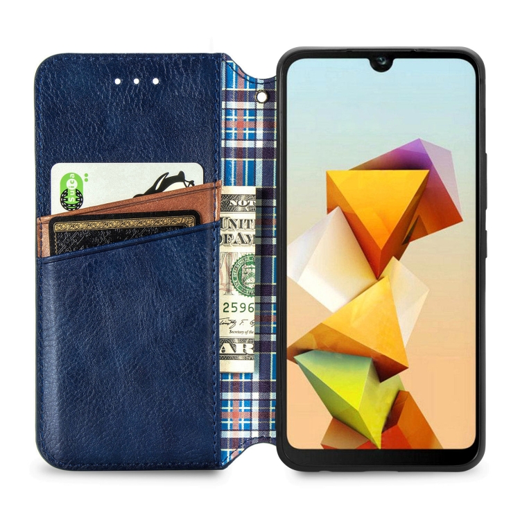 Funda de Cuero Magnética para ZTE Blade A33S Cubic Grid (Azul)