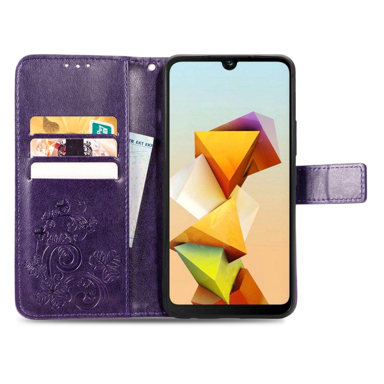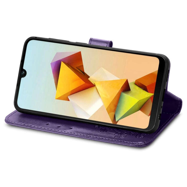 Funda para ZTE Blade A33S de Cuero en Relieve con Cierre de Cuatro Hojas (Púrpura)