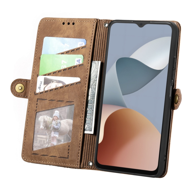 Funda para ZTE Blade A34 de Cuero con Hebilla Lateral y Billetera con Cremallera Geométrica (Marrón)