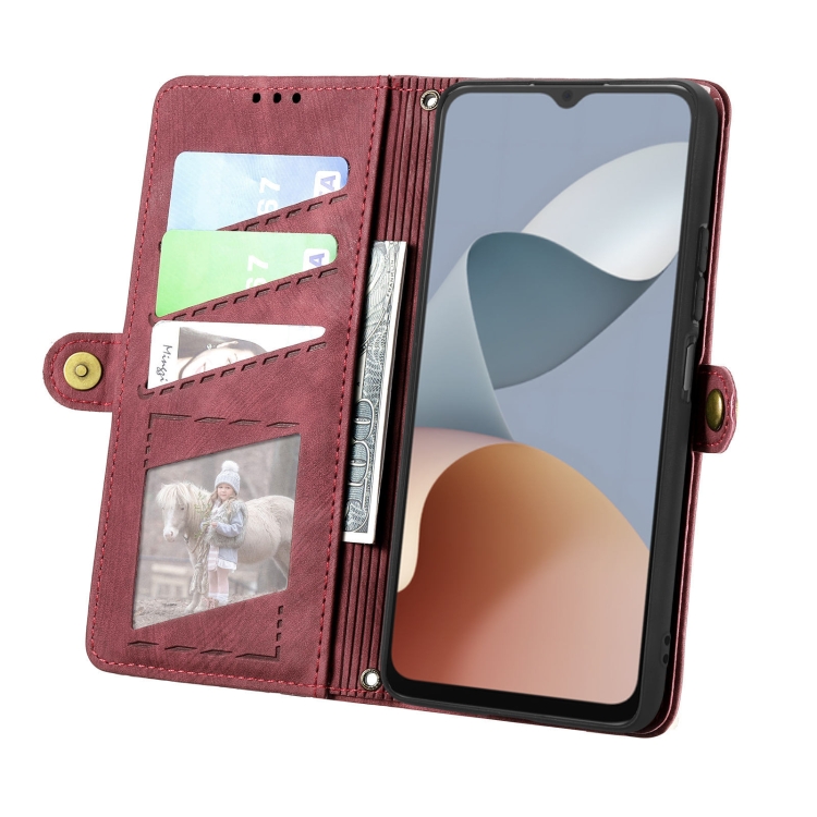 Funda para ZTE Blade A34 de Cuero con Hebilla Lateral y Billetera con Cremallera (Rojo)