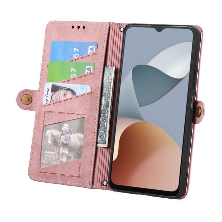 Funda para ZTE Blade A34 de Cuero con Hebilla Lateral y Billetera con Cremallera Geométrica (Rosa)