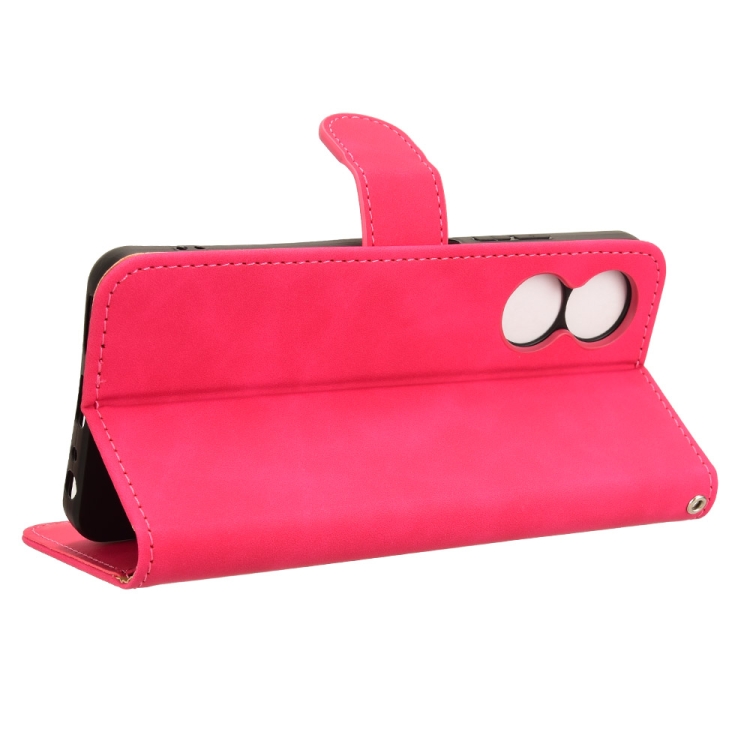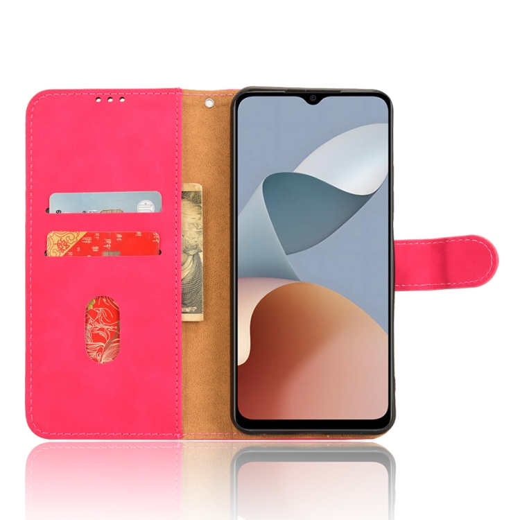Funda de Cuero con Tapa Magnética para ZTE Blade A34 Skin Feel (Rojo Rosa)