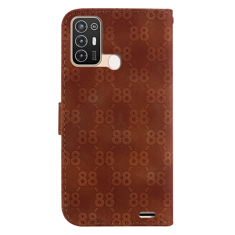 Estuche para ZTE Blade A52 de Cuero En Relieve con Doble Forma de 8 (Marrón)