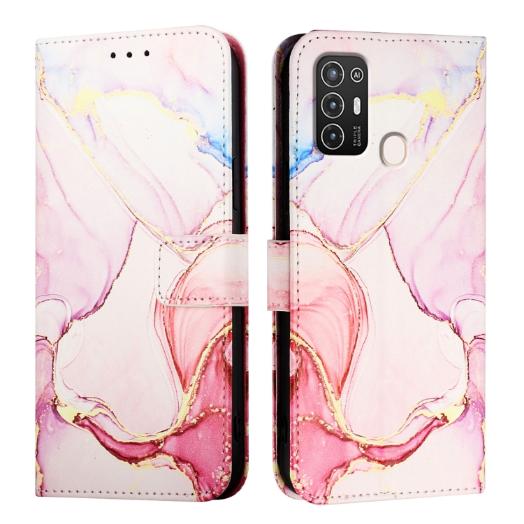 Funda de Cuero para ZTE Blade A52 Pt003 con Tapa y Patrón de Mármol (Oro Rosa)