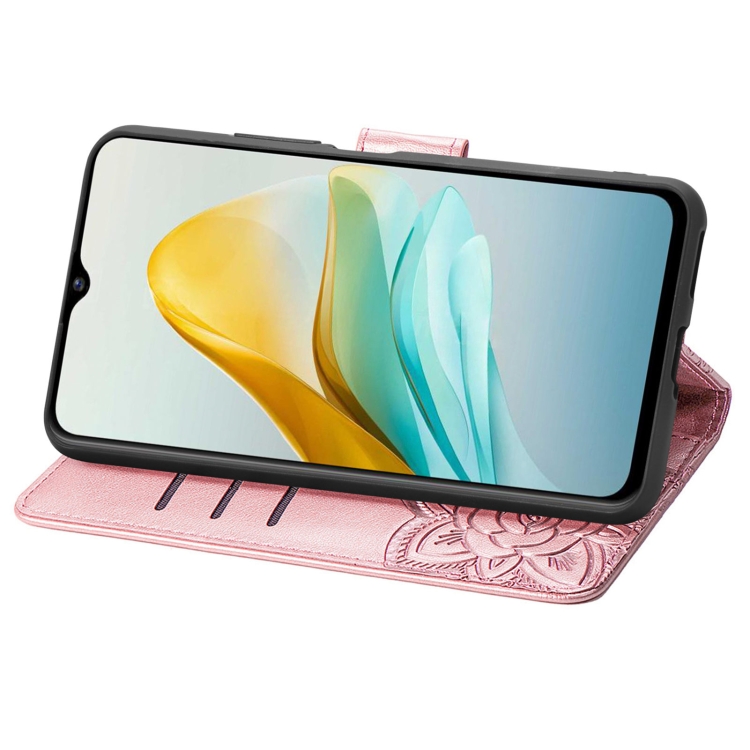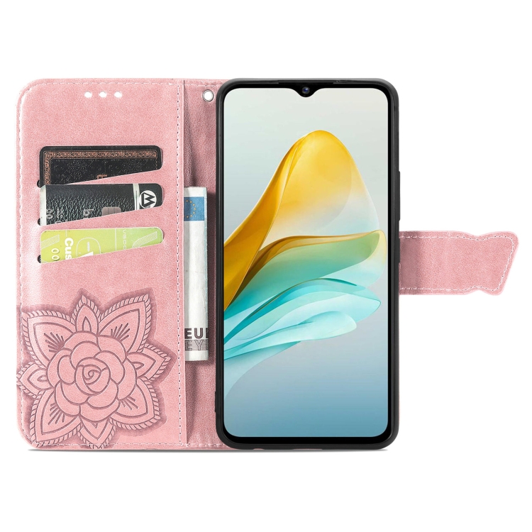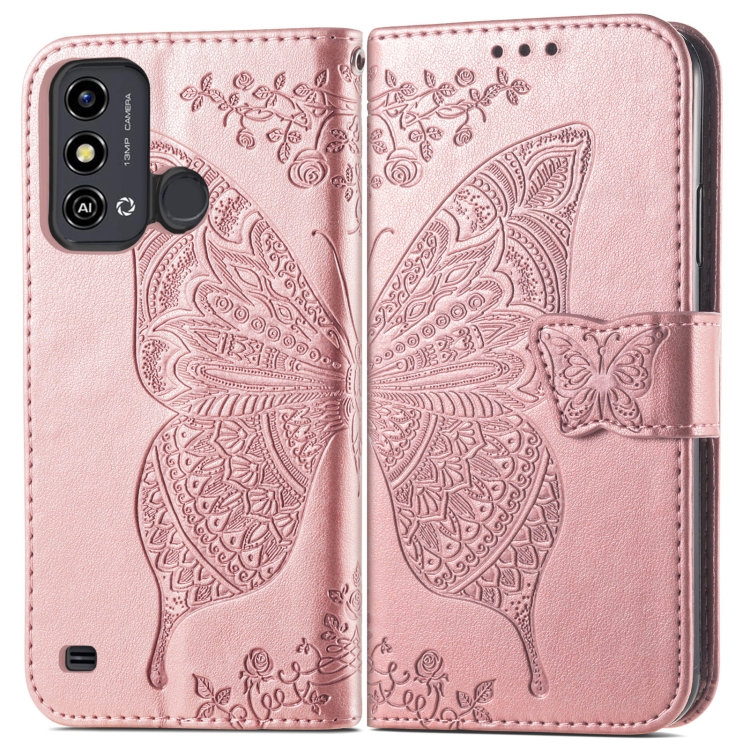 Estuche para ZTE Blade A53 Butterfly Love Flower de Cuero en Relieve (Oro Rosa)