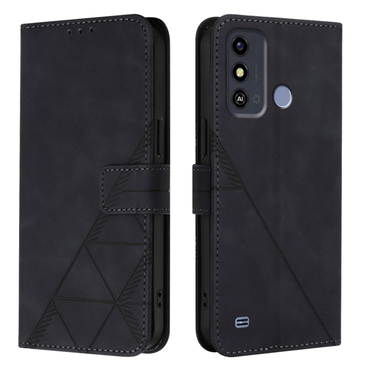 Funda de Cuero para ZTE Blade A53 Crossbody con Tapa en Relieve 3D (Negro)