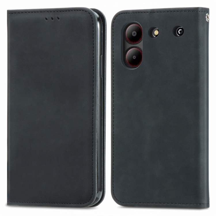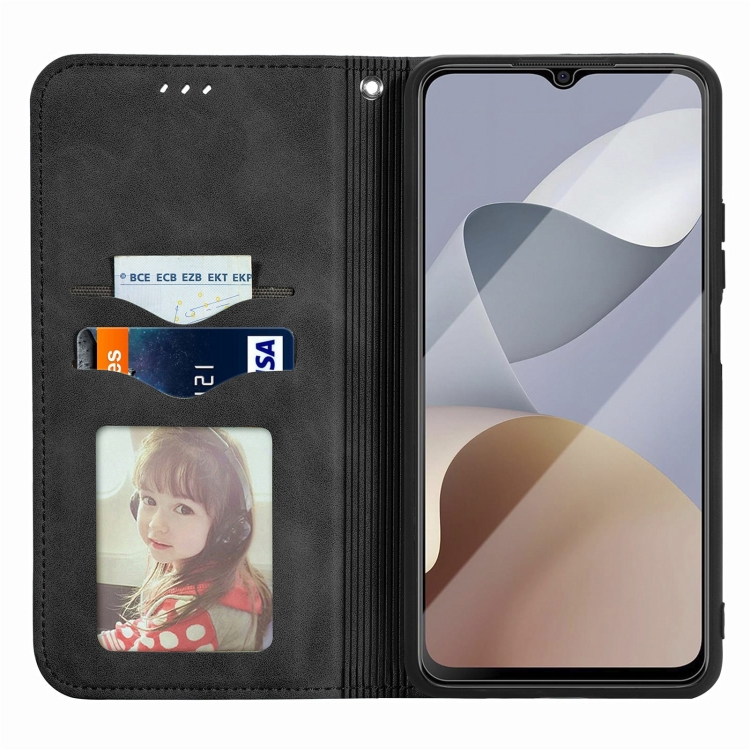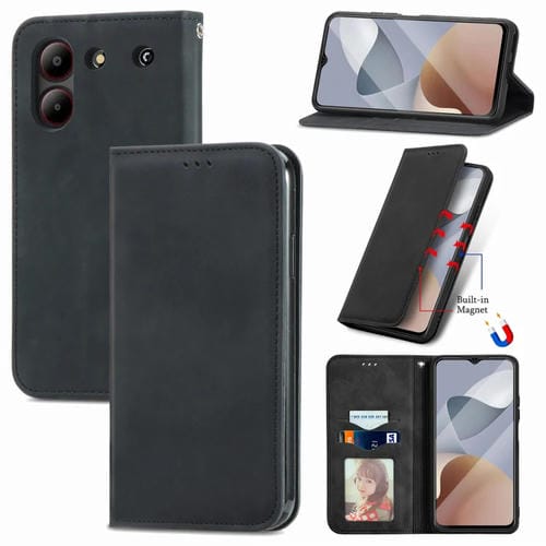 Funda de Cuero Magnética para ZTE Blade A54 con Sensación de Piel Retro (Negro)