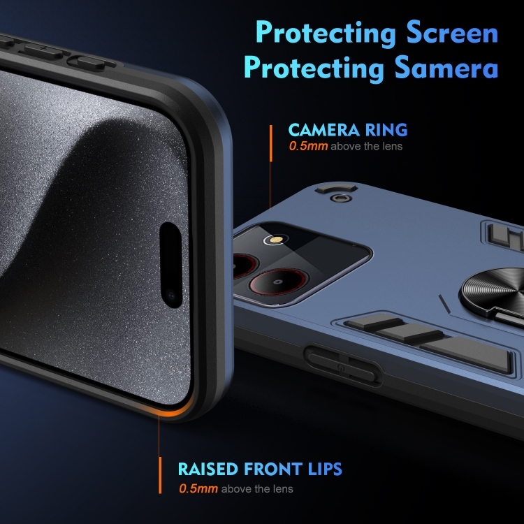 Funda para ZTE Blade A54 con Soporte de Anillo de Metal y Protección a Prueba de Golpes (Azul)