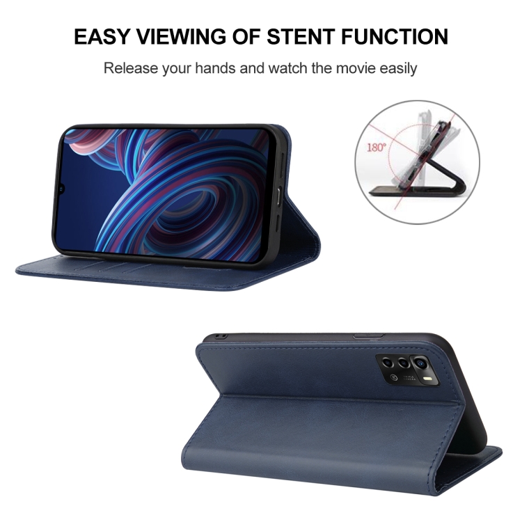 Funda de Cuero para ZTE Blade A72 4G y V40 Vita con Cierre Magnético (Azul)