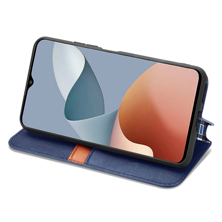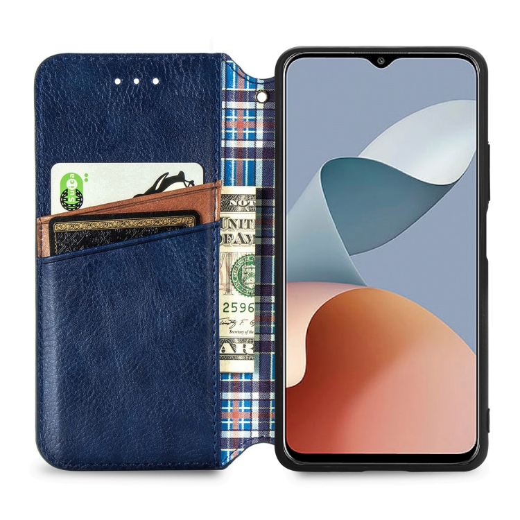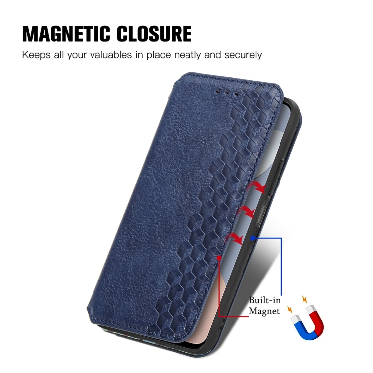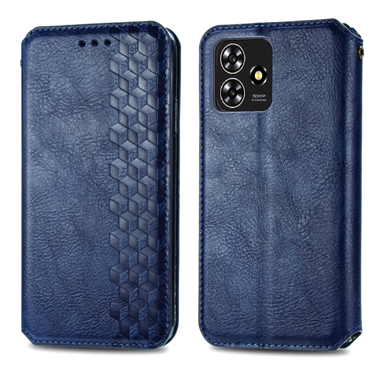 Funda de Teléfono ZTE Blade A73 4G Cubic Grid Cuero Magnético Prensado (Azul)