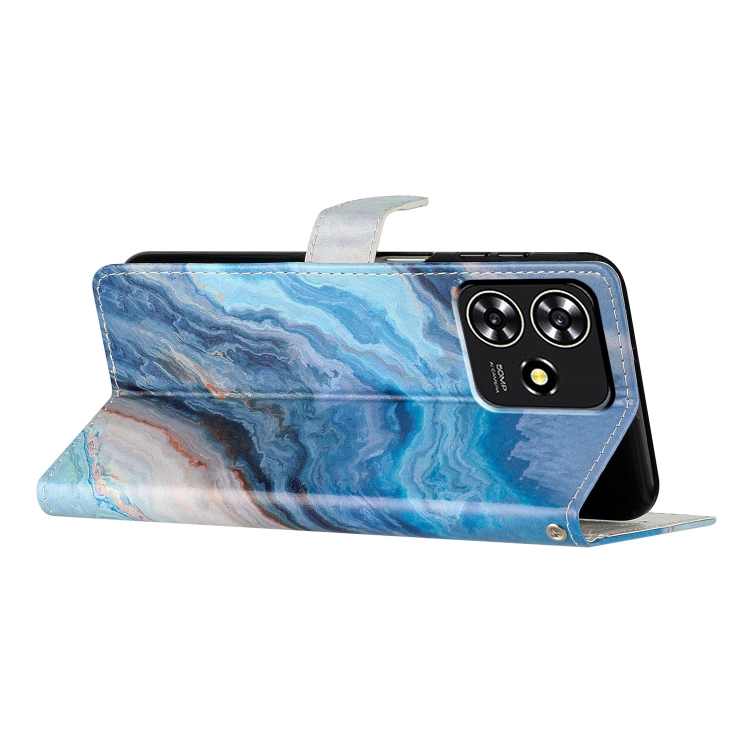 Funda de Cuero para ZTE Blade A73 4G con Dibujo Coloreado Mármol Azul