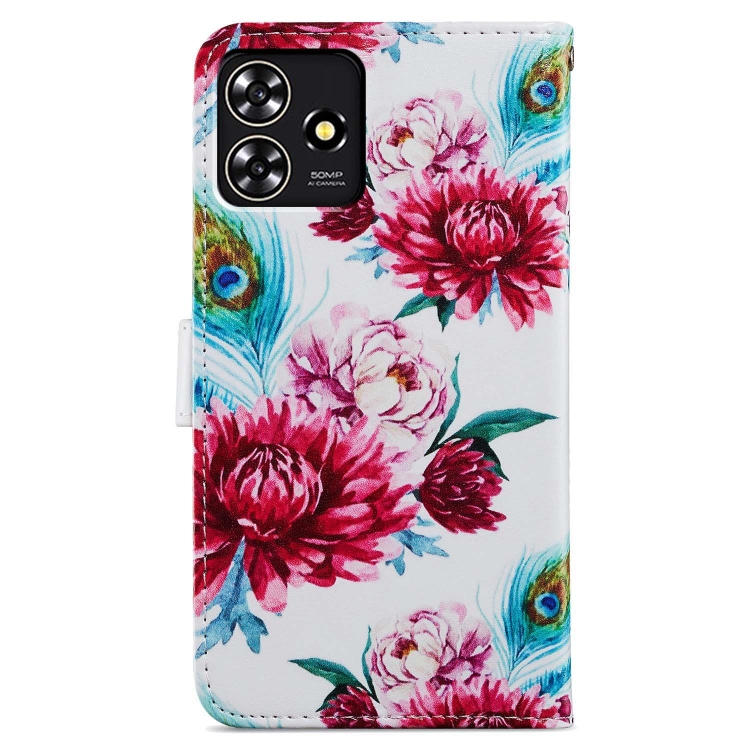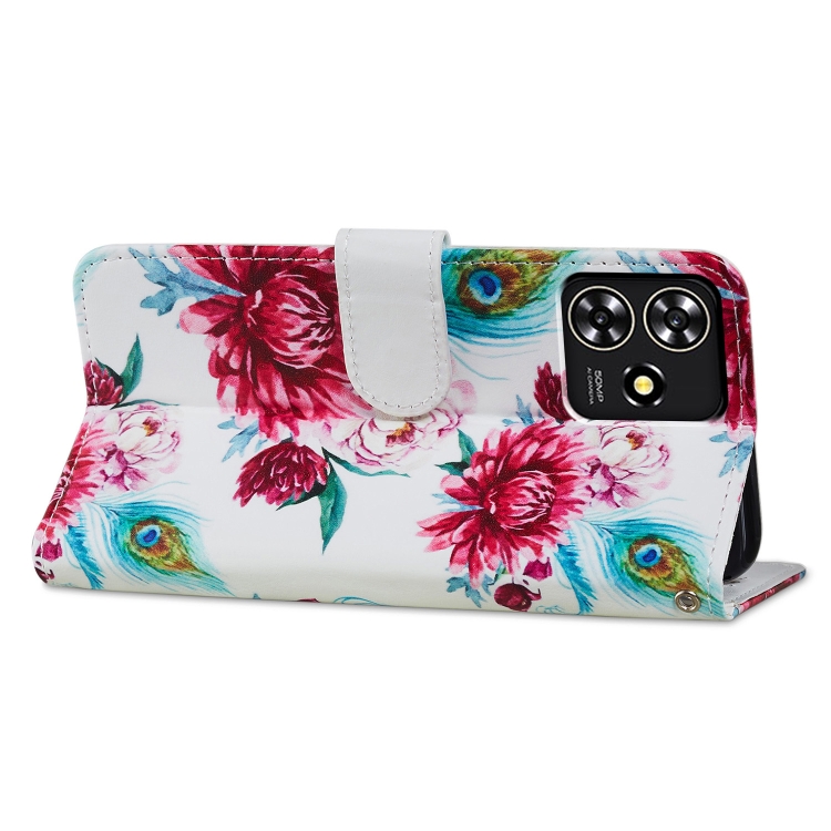 Funda de Cuero para ZTE Blade A73 4G con Tapa Horizontal y Patrón Pintado (Flor de Pavo Real)
