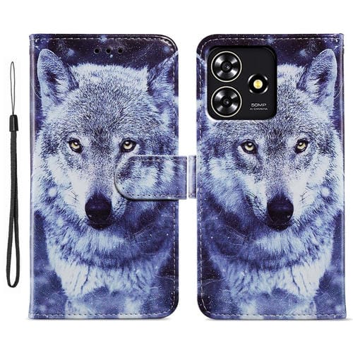 Funda de Cuero para ZTE Blade A73 4G con Tapa Horizontal y Patrón Lobo Blanco