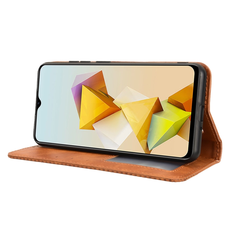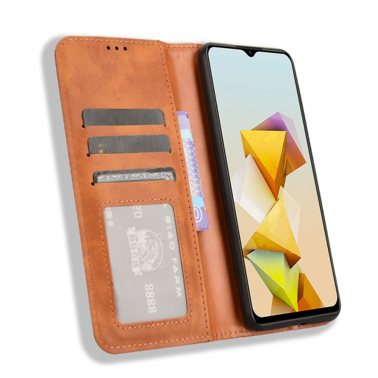 Funda para ZTE Blade A73 5G de Cuero con Textura Retro y Hebilla Magnética (Marrón)